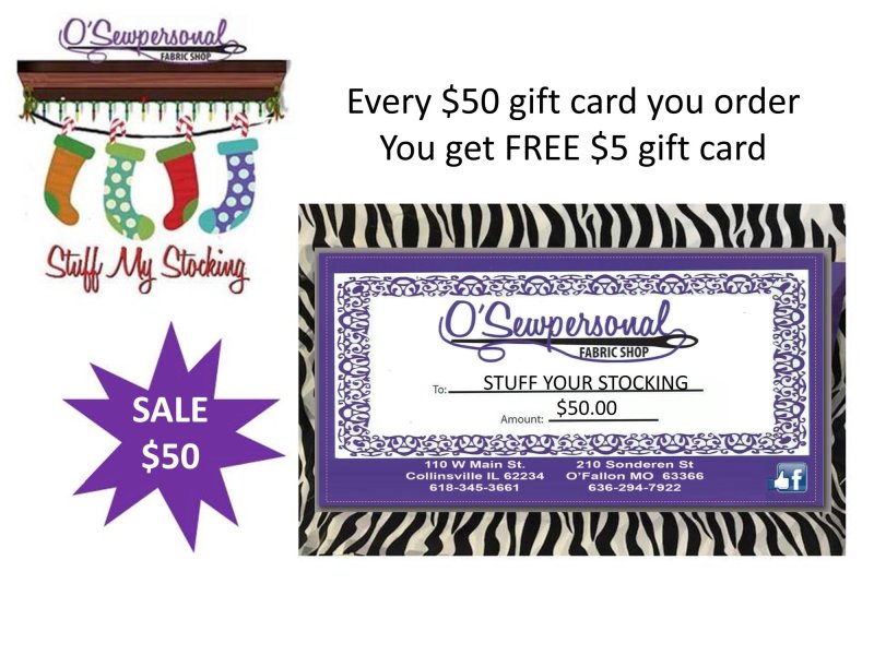 Thanks so much for your continued support of O'Sewpersonal in O'Fallon, MO & Collinsville, IL! We look forward to serving you!