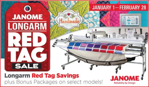 Have you been eyeing a longarm? Are your quilt tops piling up and you want to finish them? Now is a great time to buy a Longarm. We have some brand new Janome Longarms ready to install! We are offering a MAJOR Discount plus FREE DELIVERY/FREE SET UP/FREE TRAINING!!!